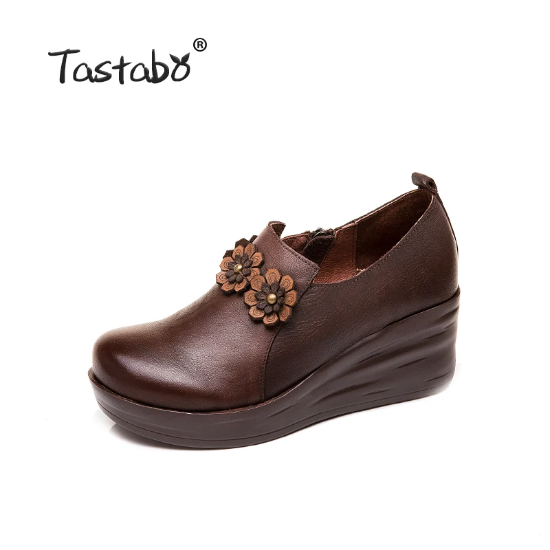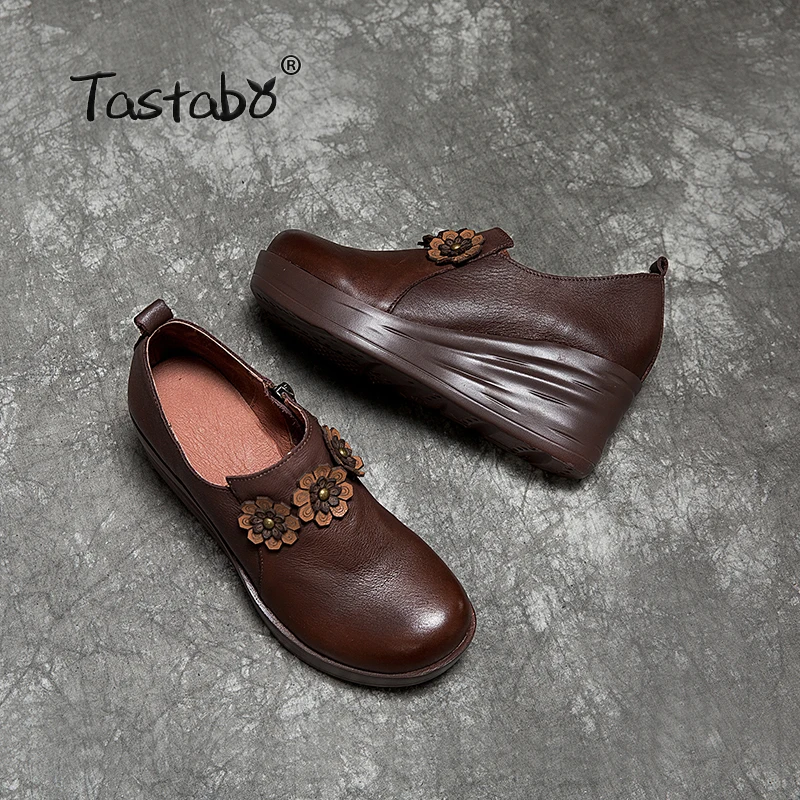 Special Offer Tastabo spód muffina buty czarne brązowe mieszkania okrągłe toe wypoczynek i wygodne chodzenie górna naklejka ręcznie robione buty damskie Discount 48% Today!
