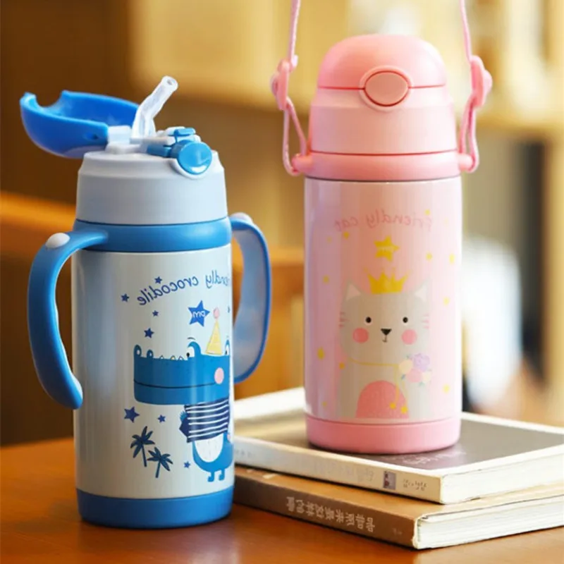 Product Name: Nowy 380ml stal nierdzewna 304 uchwyt przenośny sport butelka na wodę ze słomką dinozaur dziecięcy termos do kawy kubek dziecięcy termos