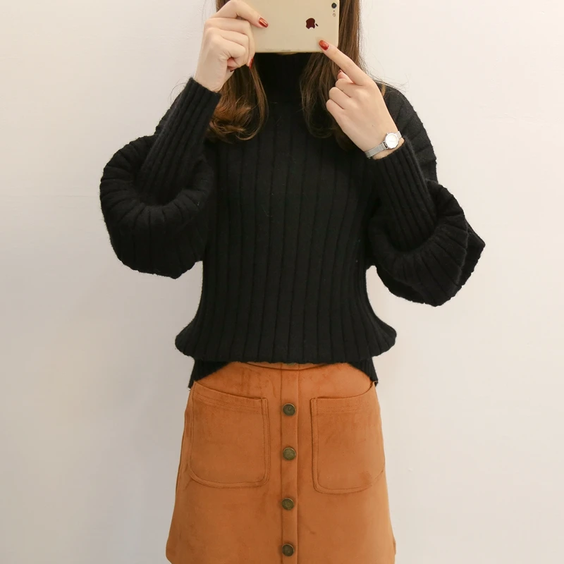 Product Name: Truien dames winter2019 długa koszula dla kobiet płaski z dzianiny latarnia rękaw półgolf nowy sweter luźny krój 7010 50