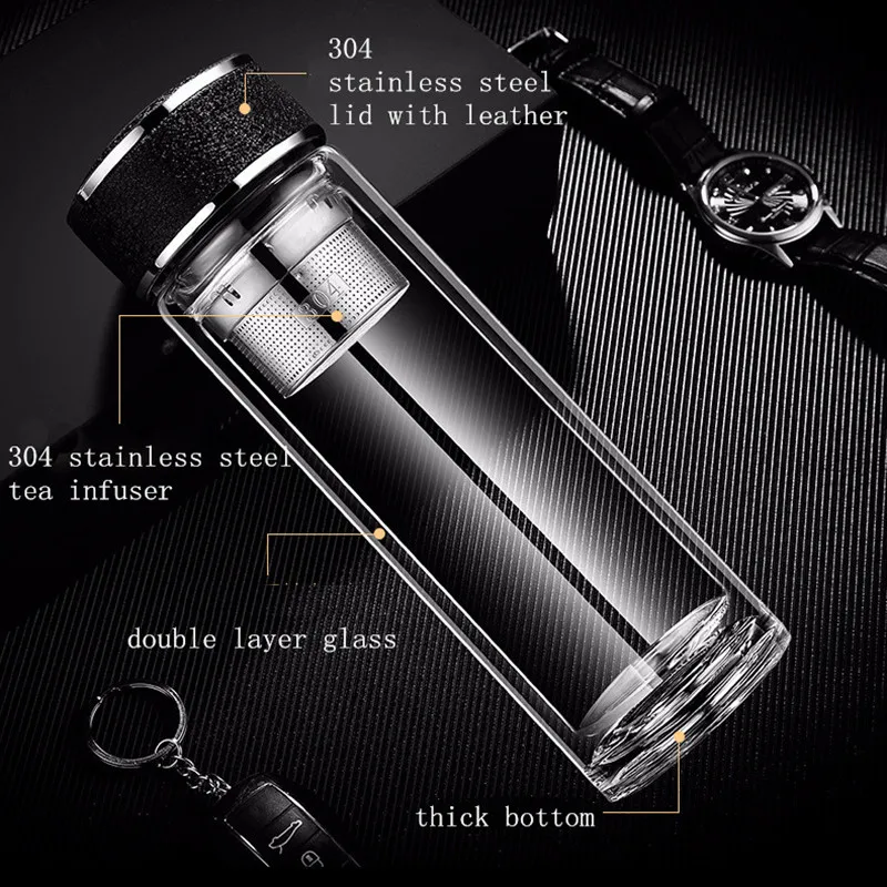 Special Offer Wysokiej jakości podwójna ściana szklana butelka wody człowiek biznes zaparzaczem butelki termoizolacyjna butelka do picia przenośna do biura do napojów Discount 35% Today!