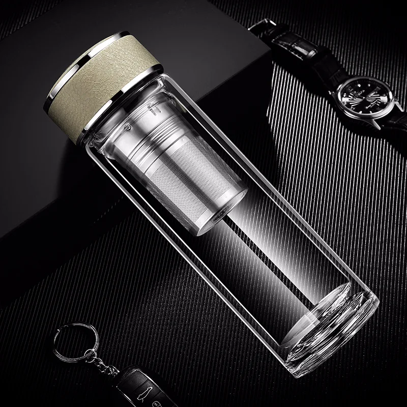 Product Name: Wysokiej jakości podwójna ściana szklana butelka wody człowiek biznes zaparzaczem butelki termoizolacyjna butelka do picia przenośna do biura do napojów
