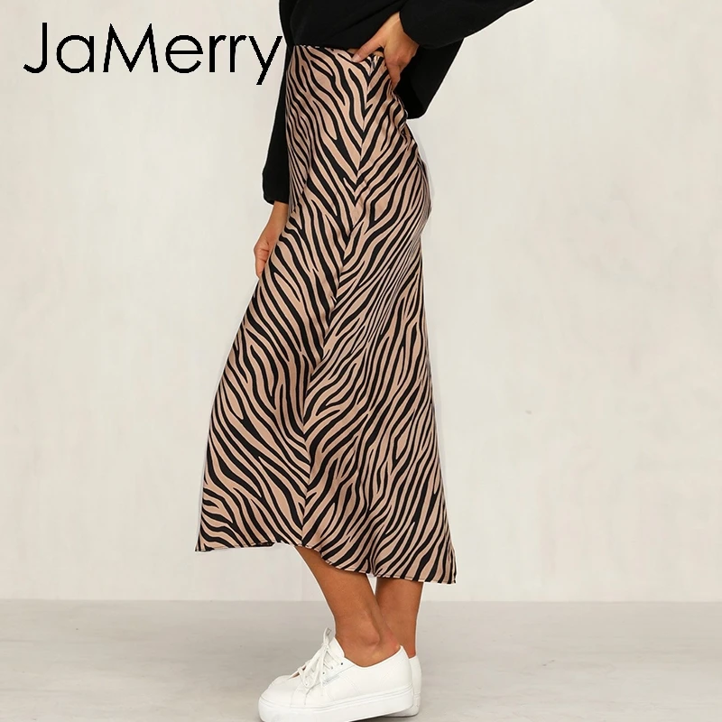 Special Offer JaMerry Vintage paski zebry kobiety spódnica trzy czwarte wysokiej talii straigh nadruk zwierzęta kobiece dół spódnica rozrywka nocna impreza spódnica klubowa Discount 45% Today!