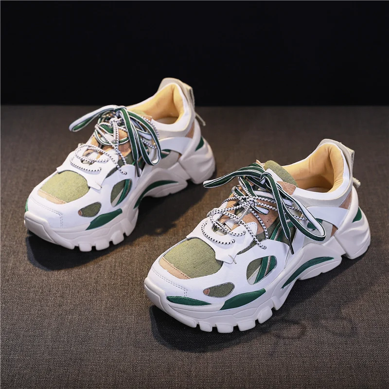 Product Name: Uśmiech koło damskie buty płaskie platformy Sneaker sznurowane na co dzień wygodne Patchwork grube dno panie Sneaker