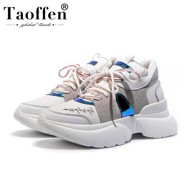 Product Name: Taoffen 2020 Ins Hot sprzedaż moda kobieta trampki gruby dół prawdziwe skórzane stylowa jesień buty krzyż pasek obuwie rozmiar 35 42