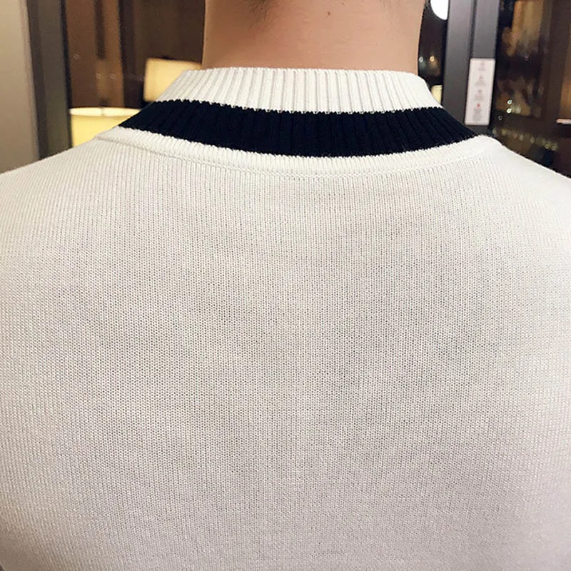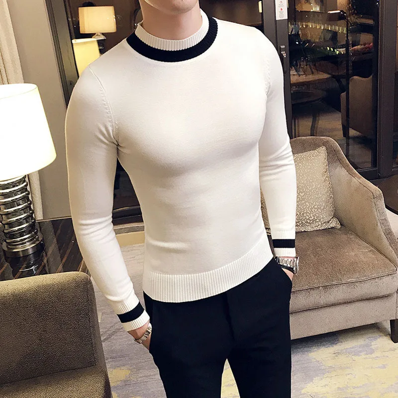 Product Name: 2019 nowa jesienna męska sweter pull homme fashion casual warm solid color o neck Slim bottoming męski dziergany sweter biały czarny