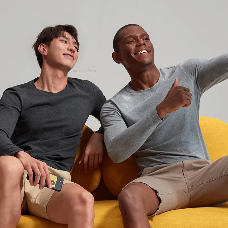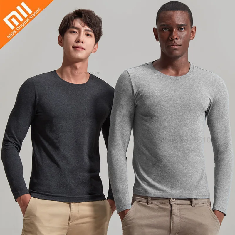 Special Offer Xiaomi 2 sztuk męska wokół szyi długa koszula jesienne i zimowe ubrania ciepły długi t shirt 4 kolor opcjonalnie domu z długim rękawem Discount 21% Today!