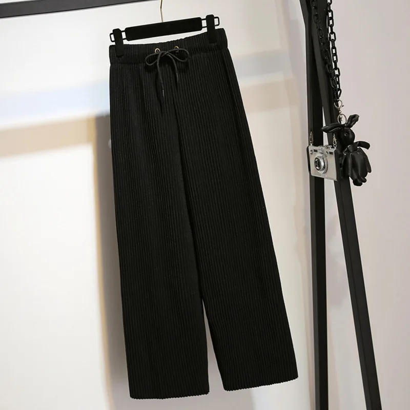 Product Name: Wysokiej talii plisowane szerokie spodnie zimowe kobiet 2019 szczupła stałe spodnie damskie luźne spodnie z koronką damska spodnie damskie
