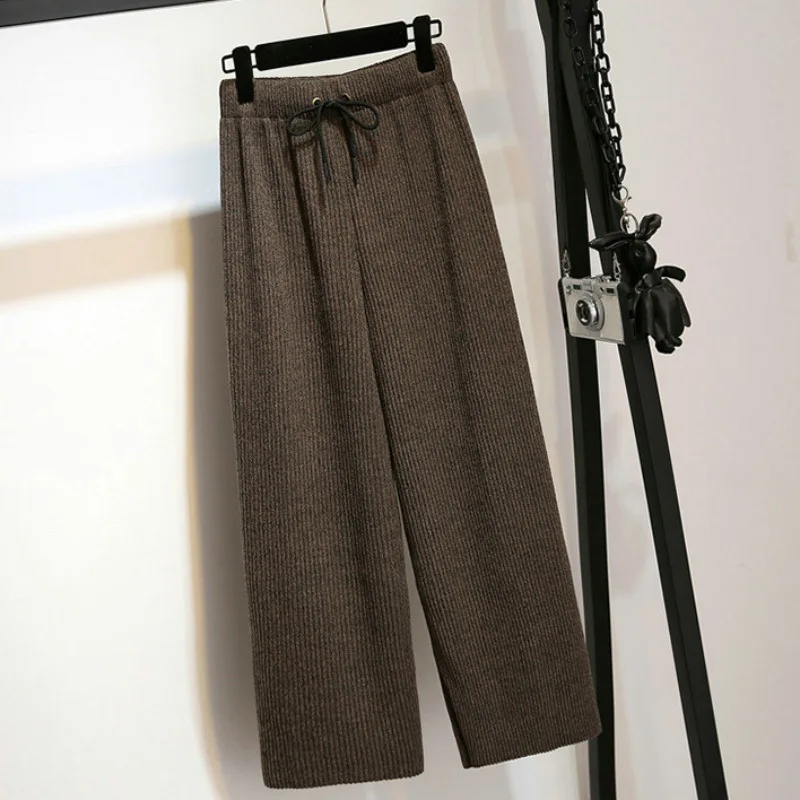 Special Offer Wysokiej talii plisowane szerokie spodnie zimowe kobiet 2019 szczupła stałe spodnie damskie luźne spodnie z koronką damska spodnie damskie Discount 49% Today!