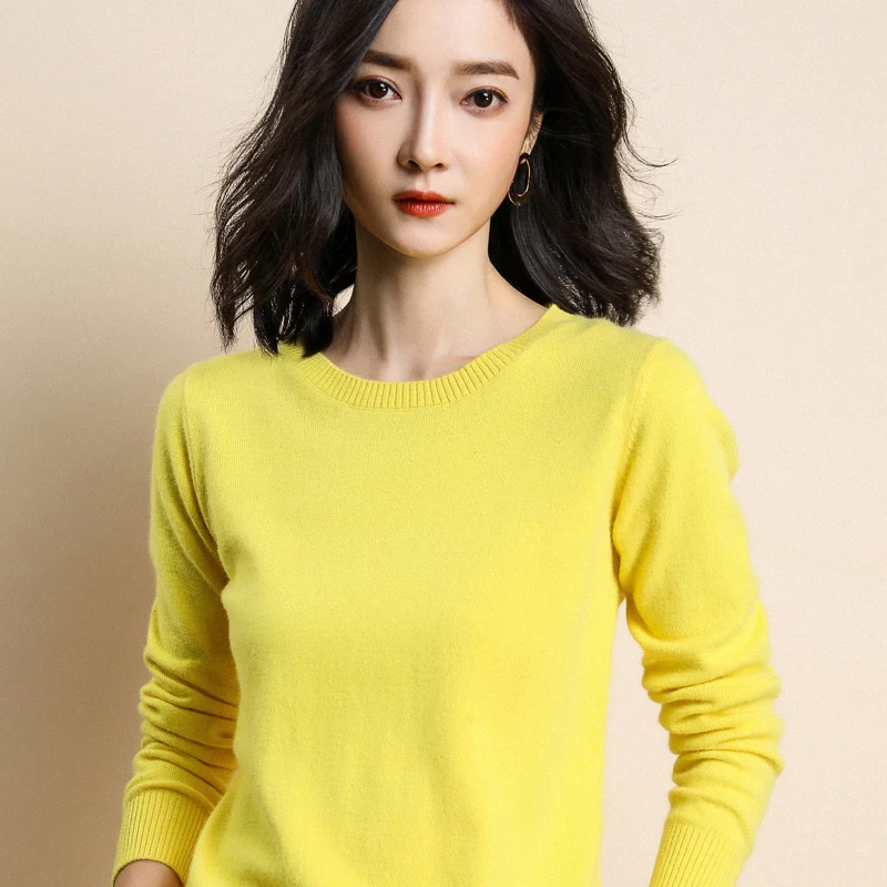 Special Offer 2018 nowy jesienno zimowy damski sweter z okrągłym dekoltem dzianinowy najniższy koreański wersja luźnego, jednokolorowego swetra damskiego Discount 49% Today!