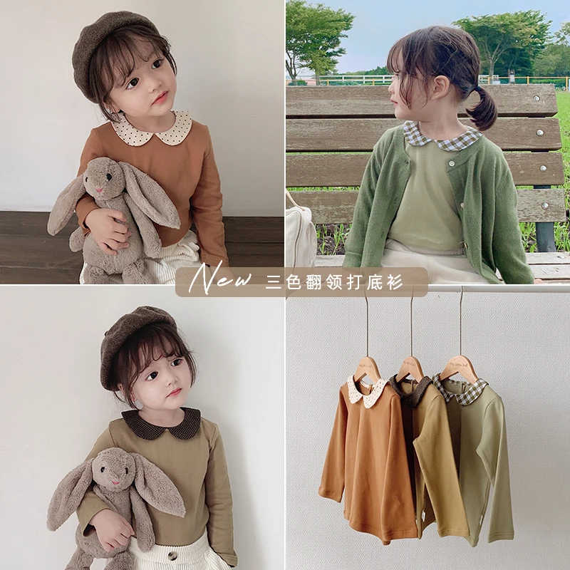 Product Name: Dziewczynek spokojnie bawełny z długim rękawem T shirt dziewczyny chusta kołnierz najniższy koszula maluch dzieci 2019 wiosna jesień na co dzień topy