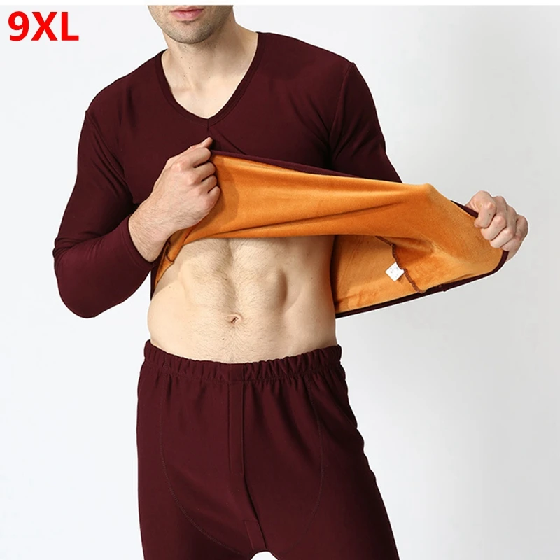 Special Offer Zimowe męskie plus size plus aksamitne grube zestawy bielizny termicznej duże rozmiary długa koszula aksamitna ciepła aksamitna komplet bielizny Discount 30% Today!