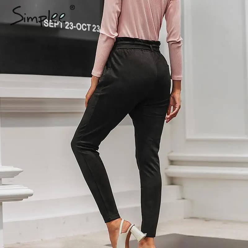 Special Offer Simplee Suede wysokiej talii ołówkowe spodnie capris kobiety dół sash streetwear casual spodnie 2018 jesień elegancki czarny zimowe spodnie Discount 40% Today!