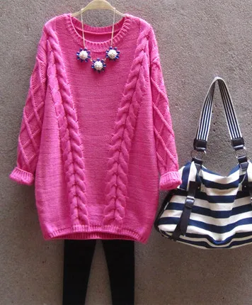 Special Offer 2019 nowa wersja koreańska luźny duży sweter w warkocze z okrągłym dekoltem średnie i długie dzianiny bluzka dla kobiet Discount 40% Today!