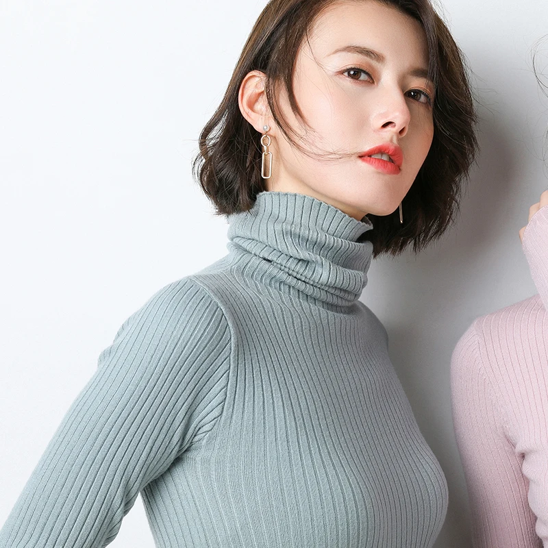 Special Offer Sweter damski sweter jesienno zimowy z dzianiny w paski ciepła, slim golf moda wysoka elastyczność kobiet najniższy topy sweter Discount 70% Today!