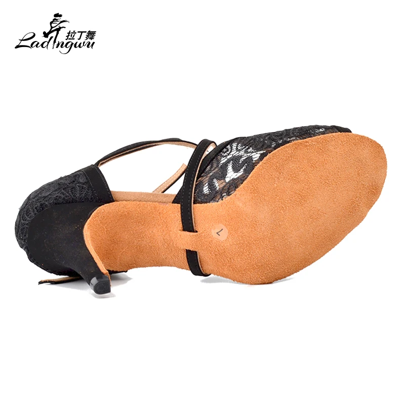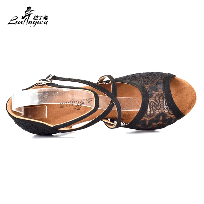 Special Offer Ladingwu gorąca sprzedaży czarne koronkowe buty do tańca Salsa miękkie dno pluszowe Pad czarne buty dla kobiet obcasy 6 cm 7.5 cm 9 cm Discount 29% Today!