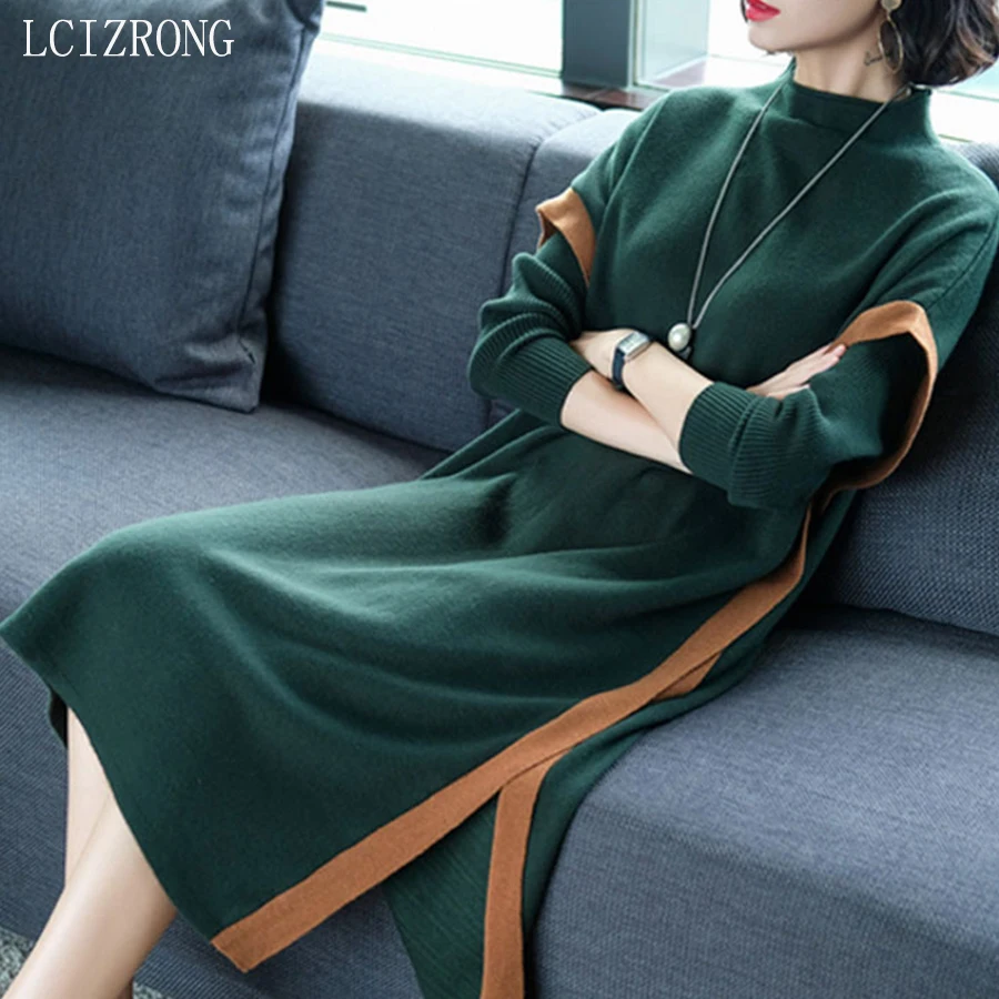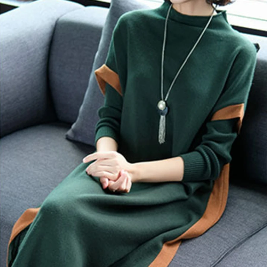 Special Offer Moda zimowa luźny długi sweter z rękawem sukienka damska elegancka biurowa, damska dzianinowa sukienka z dzianiny ciepła 3XL Plus rozmiar Midi sukienka Discount 42% Today!