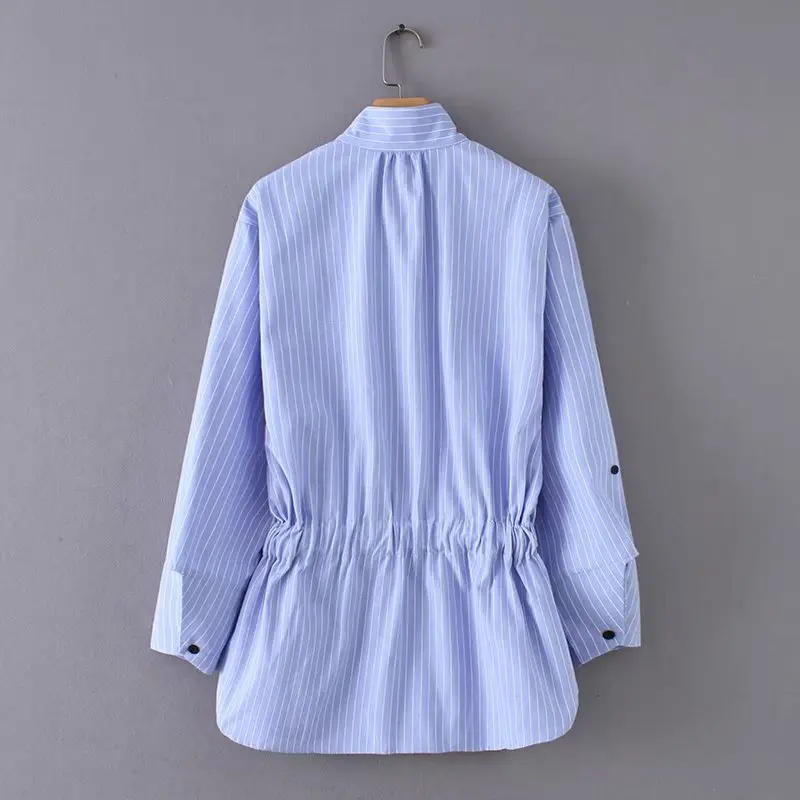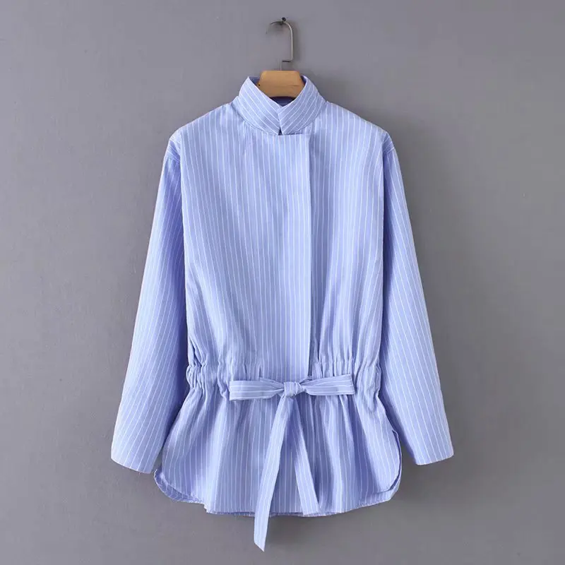 Product Name: Kobiety kołnierz stójka w stylu vintage paski muszka sznurkiem casual bluza bluzki koszule damskie chic kimono blusas femininas topy LS2773