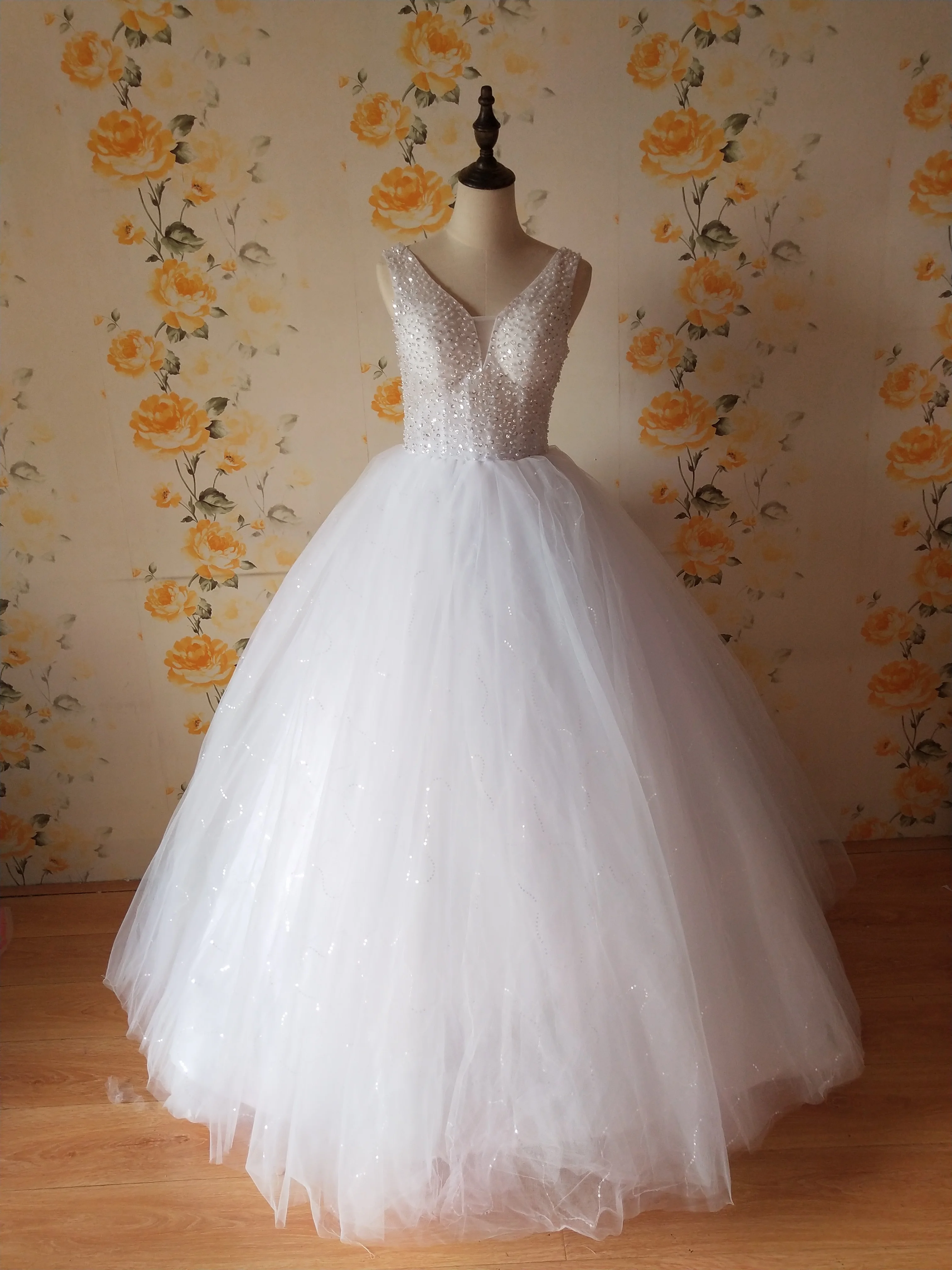 Product Name: ZJ9098 2020 2019 nowy biały Ivory elegancki O Neck suknie ślubne ślubne dole koronki klienta wykonane