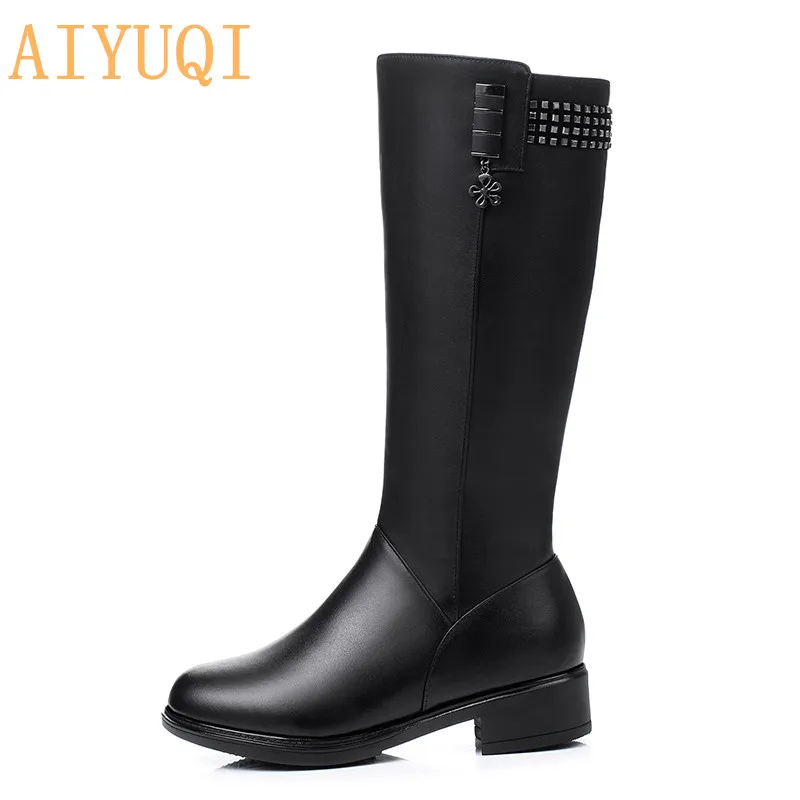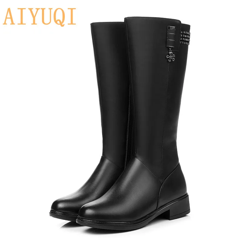 Special Offer Damskie buty zimowe oryginalne skórzane buty damskie na wysokim obcasie kozaki damskie wełniane podszyte ciepłe buty na śnieg Lady Fashion shoes Discount 44% Today!