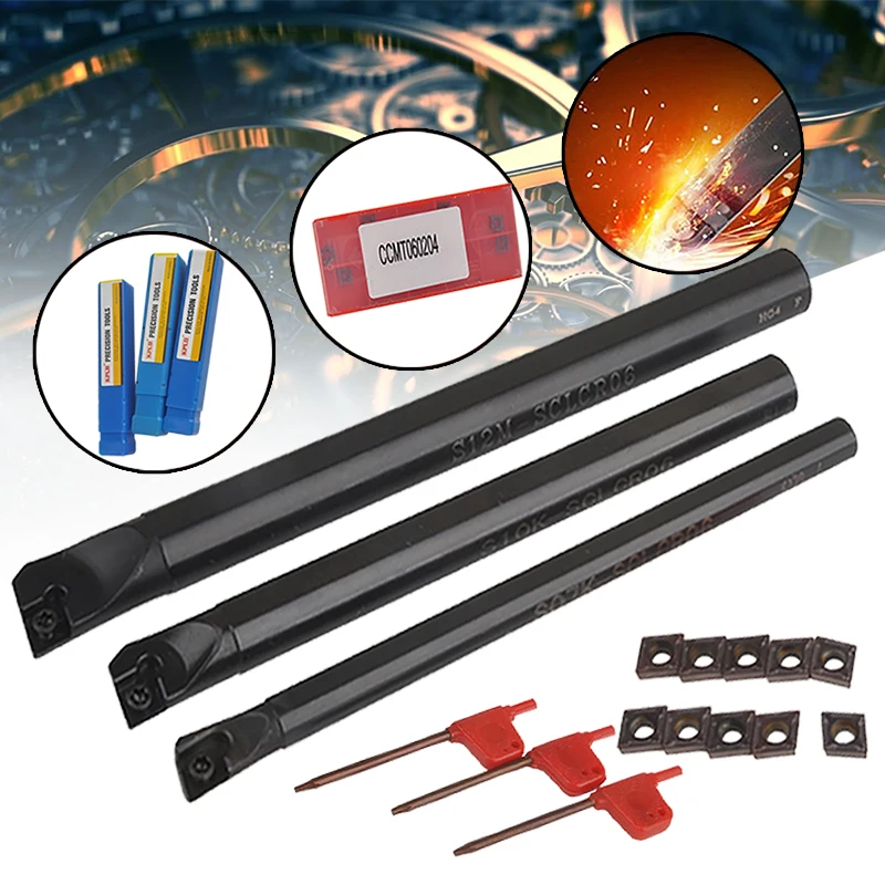 Product Name: 10 sztuk CCMT0602 płytka węglikowa + 3 sztuk SCLCR wytaczadło uchwyt narzędziowy z 3 sztuk klucze do narzędzia tokarskie