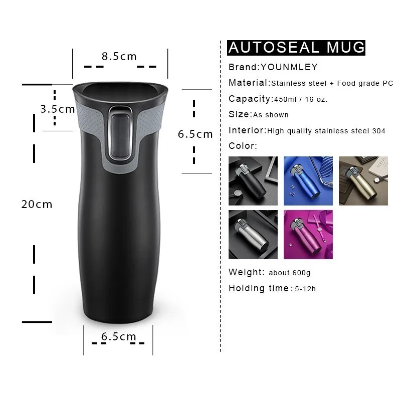 Product Name: 450ml 16oz AUTOSEAL kubek podróżny termo kawa kubek próżniowy ze stali nierdzewnej izolowane kubki flaszka na wodę termiczna butelka na herbatę Auto kubki