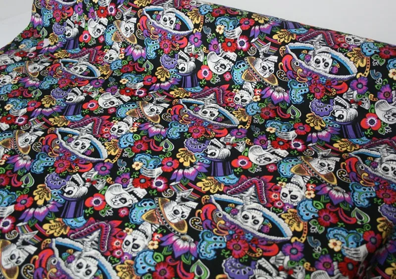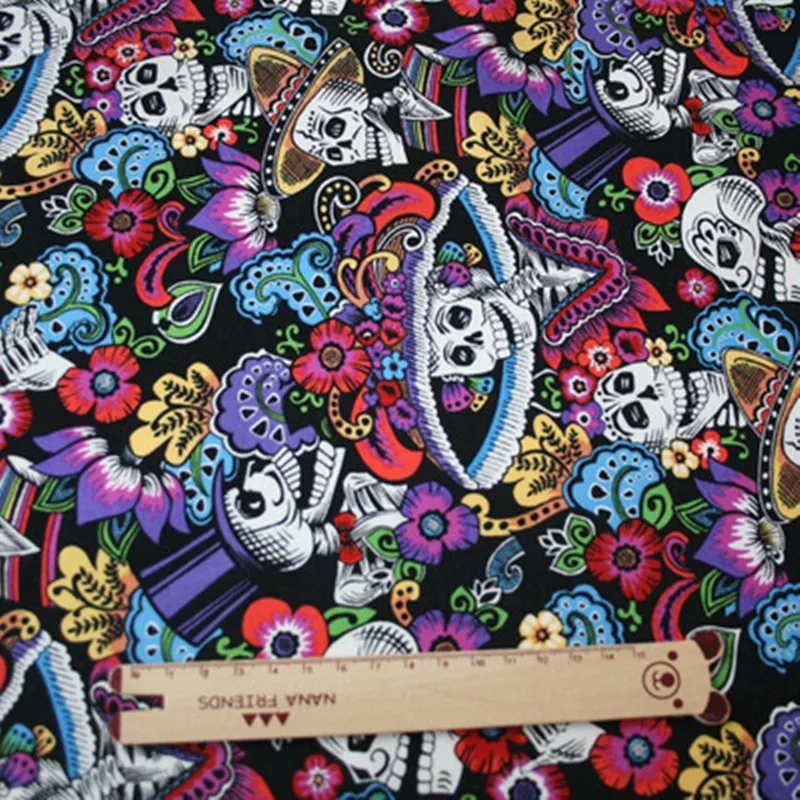 Special Offer Pół jarda prawdziwa bawełna z kwiatem nadruk z czaszką czarny dół ręcznie diy materiał do szycia T1021 Discount 0% Today!