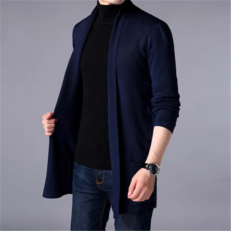 Special Offer 2019 wiosna nowa młodzież męska sweter jednolity kolor długa koszula, koreański, z długimi z długim rękawem koszula męska slim długi kardigan płaszcz Discount 15% Today!