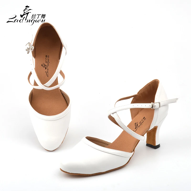 Product Name: Ladingwu białe miękkie dno zamknięte toe buty do tańca towarzyskiego buty z mikrofibry syntetyczna skóra łacińskie buty do tańca kobieta