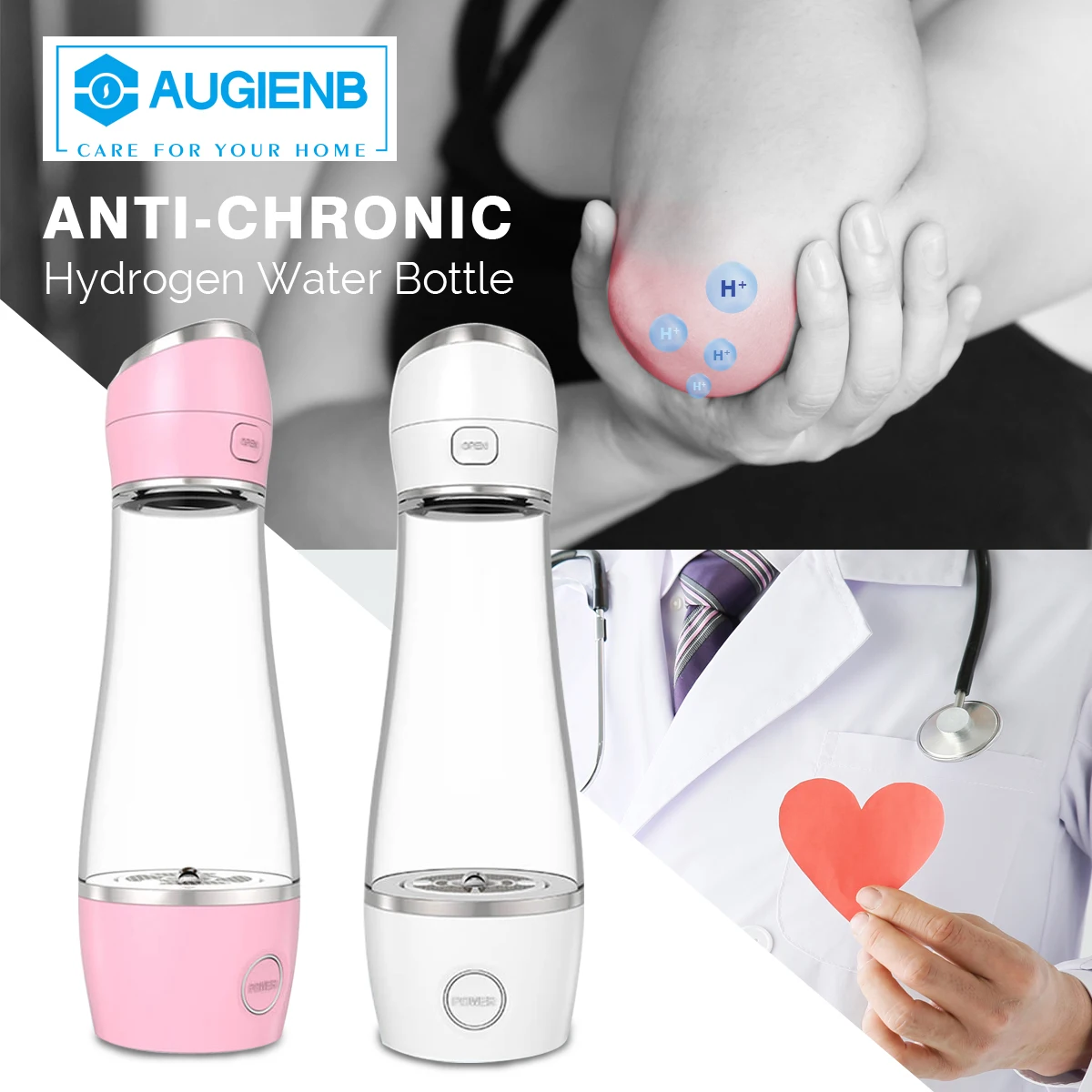 Special Offer Augienb 2 tryby szybka elektroliza USB ładowanie bogaty w wodór generator wody woda lonizer zdrowie bogaty w wodór butelka wody Discount 40% Today!