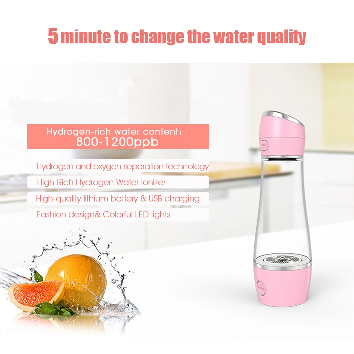 Product Name: Augienb 2 tryby szybka elektroliza USB ładowanie bogaty w wodór generator wody woda lonizer zdrowie bogaty w wodór butelka wody