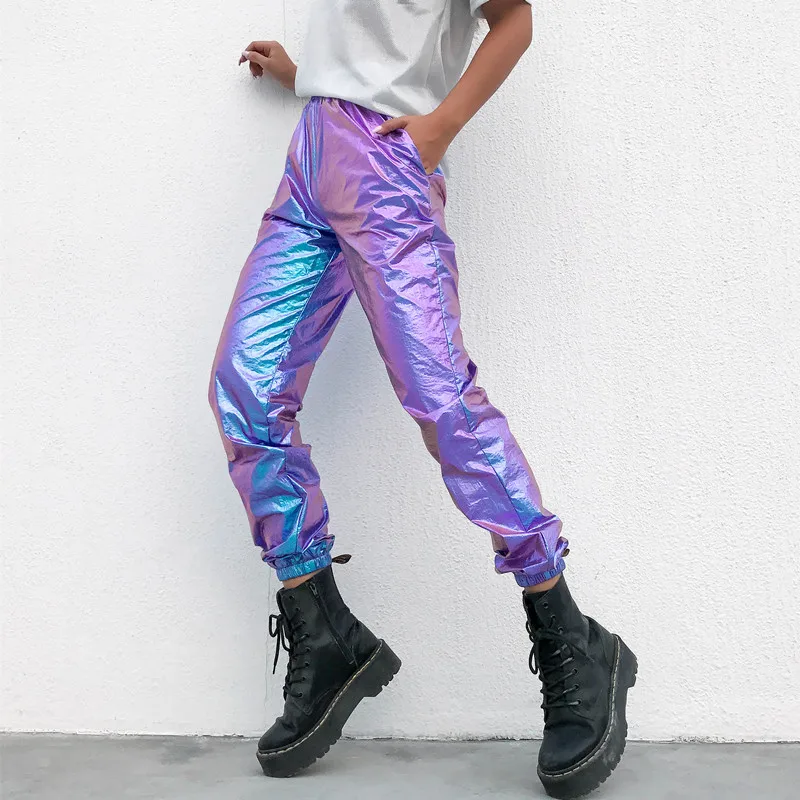 Product Name: Darlingaga Hip Hop holograficzne spodnie z wysokim stanem kobiety biegaczy streetwear taniec spodnie do biegania spodnie elastyczne lato 2019 dół