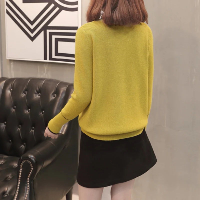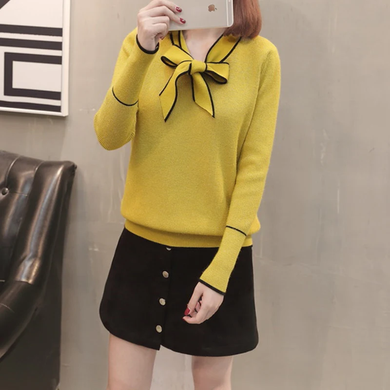 Product Name: TIGENA 2019 jesień zimowy swetr pullover kobiety sweter z dzianiny z długim rękawem kobieta z kokardą żółty czerwony Jumper odzież damska