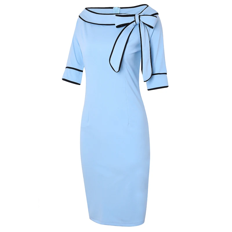 Special Offer MISSJOY sukienka biurowa jesień 2018 kobiet pół rękawa łuk Patchwork eleganckie panie pracy business Party kolano długość sukienka ołówkowa Discount 49% Today!