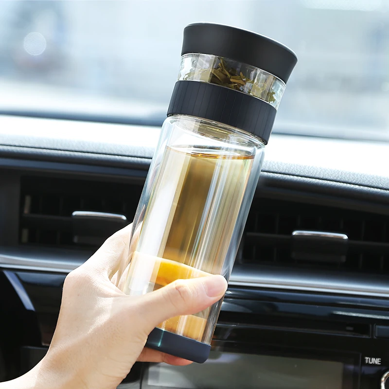 Special Offer 400ml przenośna podwójna ściana Borosilica szklana zaparzaczem butelka wody z pokrywką filtr samochód kubek kreatywny prezent Tumbler Discount 50% Today!