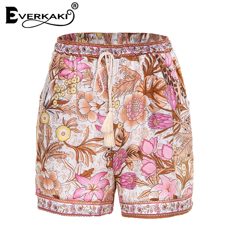 Special Offer Everkaki kwiatowe w stylu Boho tygrys spodenki z nadrukiem kobiet spodnie i spódnice elastyczna regulacja Tassel Sashes Boho spodenki kobiet 2019 lato jesień Discount 35% Today!
